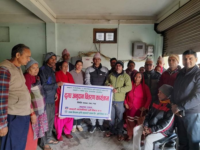 मनहरी गाउँपालिका र साना किसानद्वारा दुध उत्पादक किसानलाई अनुदान रकम वितरण