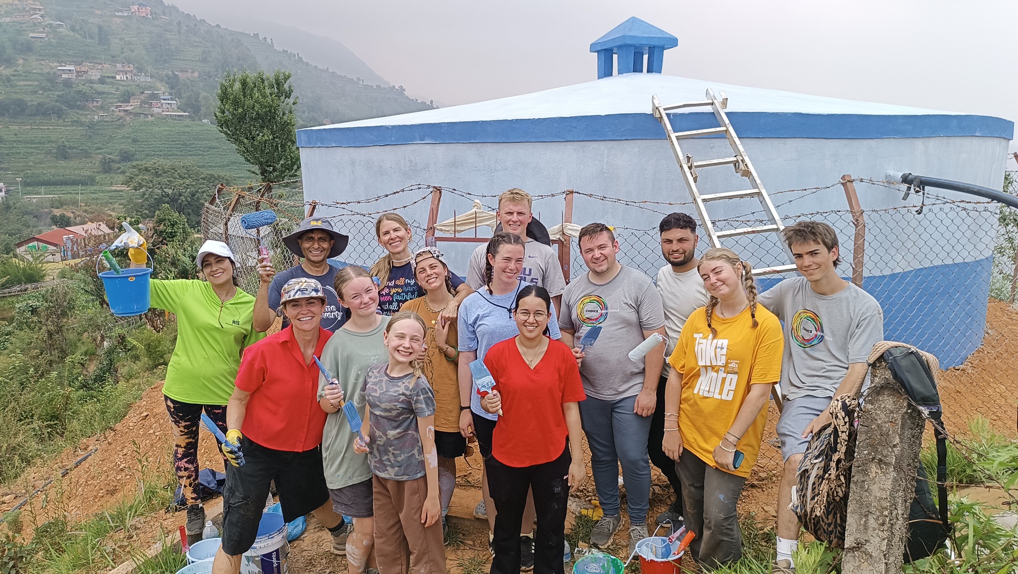 विदेशी पाहुना थाहानगरको लितीमा खानेपानी ट्याङ्की र धारामा रंङरोगन गरेर चिटिक्क पार्दै