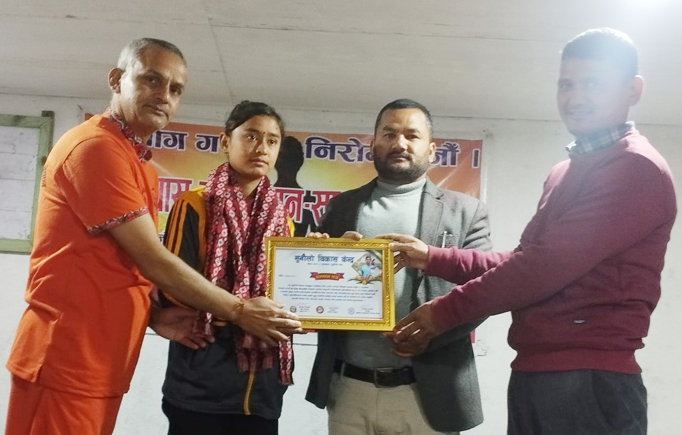 प्रदेशस्तरीय खेलकुदमा २ स्वर्ण विजेता थाहाकी गोपालीलाई सम्मान