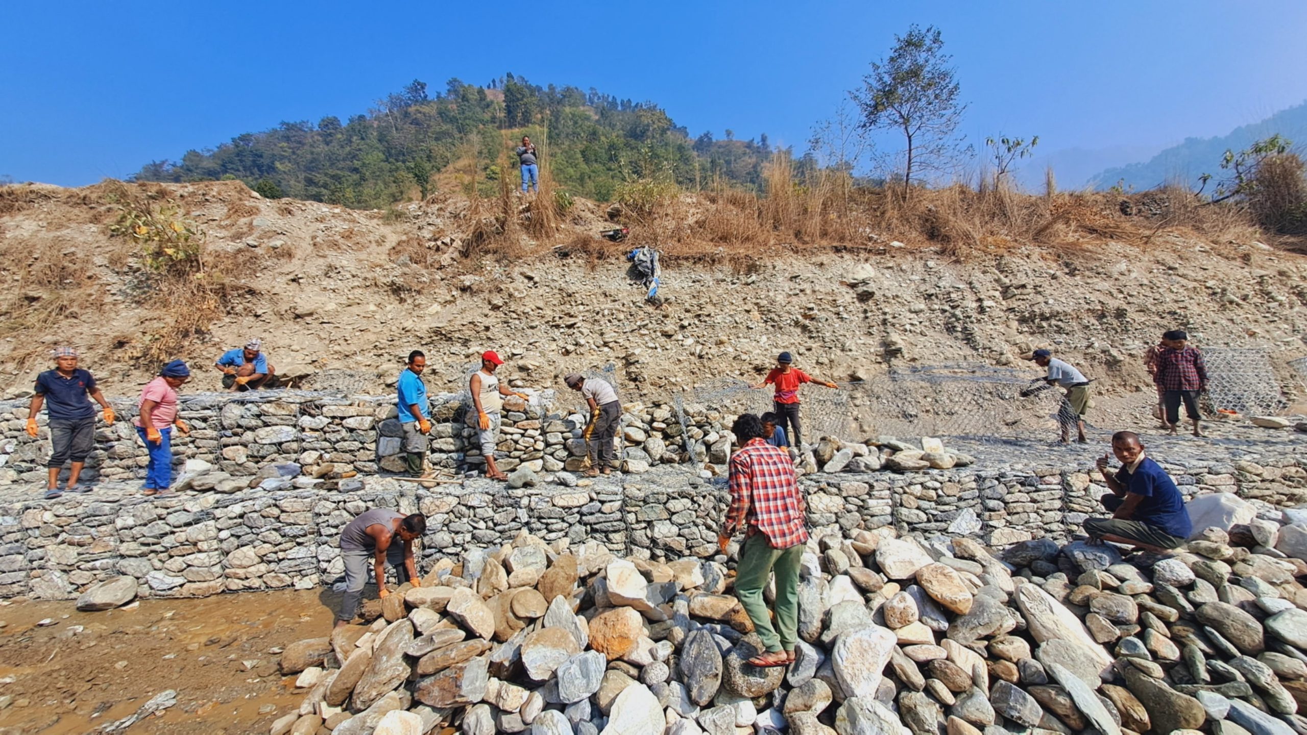 भीमफेदीको सानुटारमा ४७ लाख लगानीमा बस्ती संरक्षण हुँदै