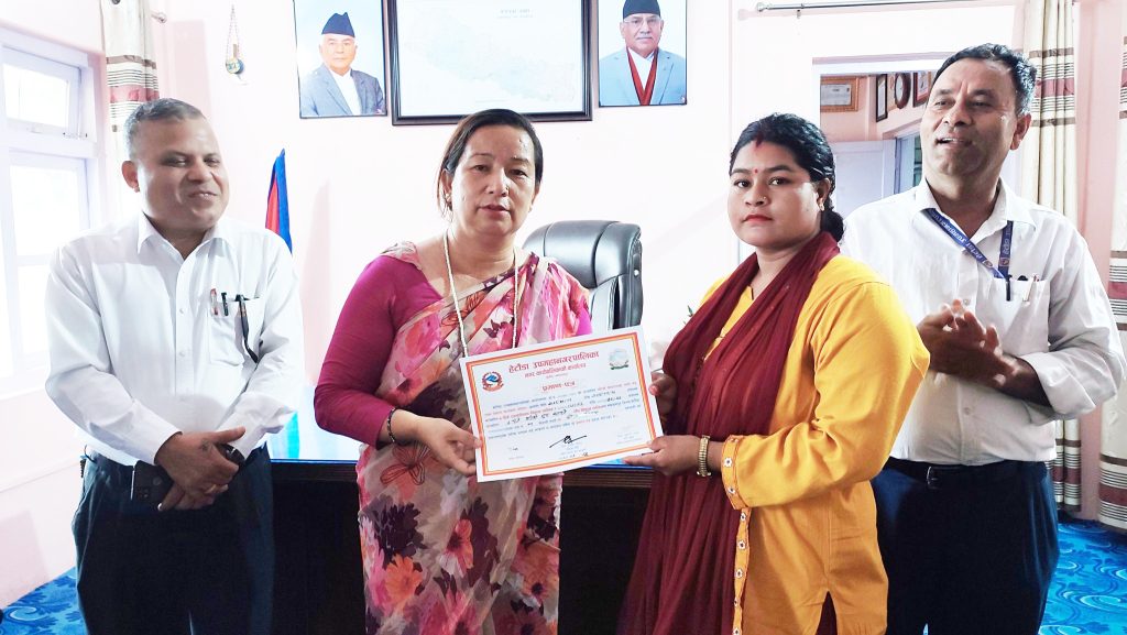 हेटौंडा उपमहानगरपालिकाको सहयोगमा गरिबी निवारणनका लागि लघुउद्यम कार्यक्रम (मेडपा) सञ्चालन गरेको बरफ, वेकरी र धुप बनाउँने तालिमको हेटौंडा उपमहानगरपालिकाका नगर प्रमुख मीनाकुमारी लामाले समापन गरेकी हुन् ।