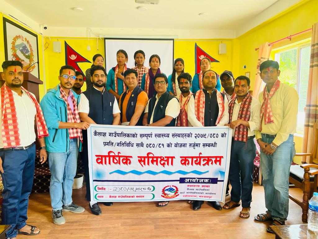 मकवानपुरको कैलाश गाउँपालिकाले स्वास्थ्यको क्षेत्रमा भएका प्रगति तथा चालु वर्ष ०८०÷८१को वार्षिक कार्ययोजना तर्जुमा गरेको छ । सोमबार गाउँपालिका प्रमुख लोकबहादुर मुक्तानको प्रमुख आतिथ्यतामा कार्यक्रम भएको थियो ।