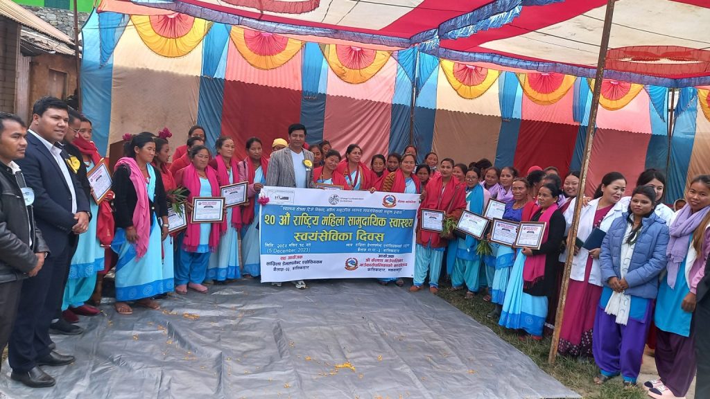 मकवानपुरको कैलाश गाउँपालिकामा २० ओैँ स्वास्थ्य स्वयमसेविका दिवस मनाइएको छ । सबै वडामा रहेका ४२ जना स्वयमसेविकालाई भेला गरी उनीहरुलाई सम्मान तथा अनुभव आदानप्रदान गरी दिवस मनाइएको हो । कैलाश गाउँपालिकाको आयोजना तथा सांग्रिला डेभलपमेन्ट एशोसिएसनको सहआयोजनामा १९ मंसिरमा कालिकाटारमा आयोजित कार्यक्रमकाबीच स्वास्थ्य स्वयम्सेविकाले खेलेको भूमिकाबारे चर्चा गरिएको थियो ।