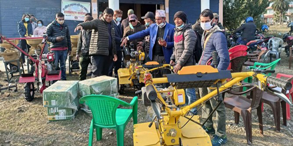 प्रधानमनत्री कृषि आधुनिकीकरण परियोजना कार्यान्वयन इकाइ उदयपुरले जिल्लाका किसानलाई ५० प्रतिशत अनुदानमा यन्त्रीकरण सामग्री वितरण गरेको हो । परियोजनाको आव ०७८÷७९ को स्वीकृत वार्षिक कार्यक्रमअनुसार ५० प्रतिशत अनुदानमा परियोजनाको क्षेत्राधिकारभित्रका किसानलाई ६० लाख रुपैयाँ बराबरको कृषि उपकरण वितरण गरिएको परियोजना कार्यान्वयन इकाइ उदयपुरका सूचना अधिकारी उत्तम पोखरेलले बताए ।