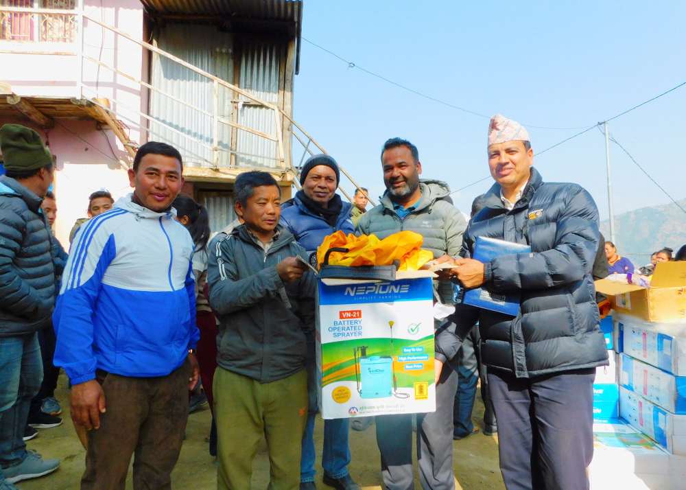 थाहा नगरपालिकाले ‘मेयर वडास्तरीय तरकारी पकेट प्याकेज कार्यक्रम’ अन्तर्गत पालिकाको १२ नम्बर वडामा किसानहरुलाई कृषि सामाग्री वितरण गरिएको छ । निर्देशिका अनुसार मापदण्ड पुगी छनोट भएको सुन्तलाबारी कृषक सहकारी थाहा–१२ अन्तर्गतका किसानहरुलाई ८ माघमा ७ एच.पि. क्षमताको पेट्रोल प्रयोग हुने ३९ वटा मिनिटिलर, स्प्रेयर २२ थान, डिजिटल काँटा तराजु १० थान, पाइप ३ सय मिटर २० एमएम २५ थान, मल्चिङ प्लास्टिक १० रोल, ग्राडेन पाइप १५ केजि, सिल्पोलिन प्लास्टिक ७ थान, स्प्रीङकल १०० थान, एप्रोन सेट १५ थान, वितरण गरिएको कृषि शाखा प्रमुख संजय तिवारीले जानकारी दिए ।