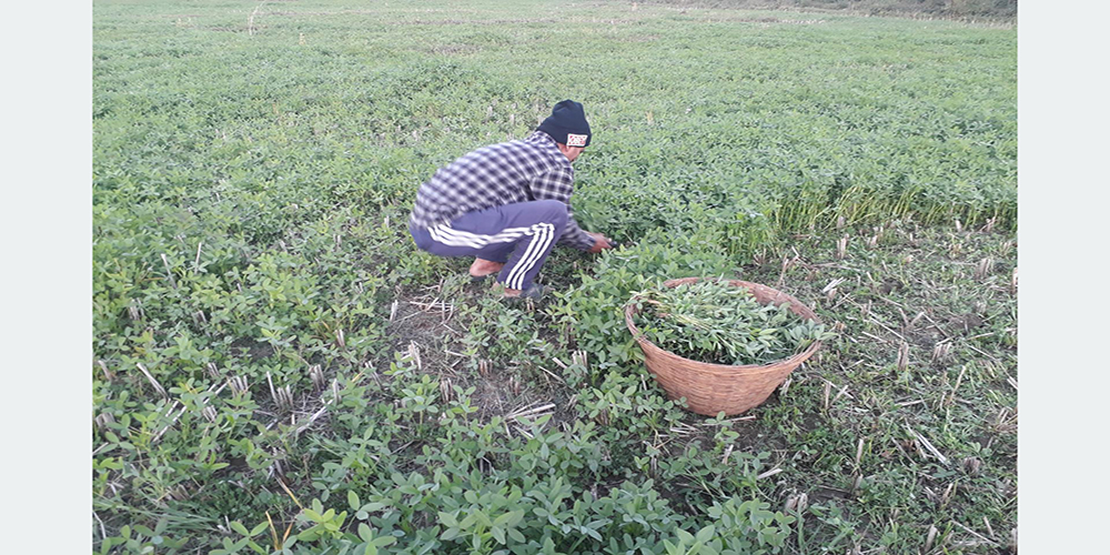 घोराही–१७ कर्जाहीका पूर्ण चौधरीले दुई भैंसी, चार भेडा र छ बाख्रा पालेका छन् । ‘दश कट्ठा खेतमा बरसिम घाँस छरेको छु, बस्तुभाउलाई पाल्न सजिलो भएको छ’, उनले भने । घरमै बीउ उत्पादन गरेर बर्सेनि घाँस खेती गर्ने गरेको उनले बताए । ‘गत वर्ष ६० हजार रुपैयाँको घाँसको बीउ बिक्री गरेको थिएँ । यसपालि हिउँदे वर्षा भएकाले घाँस राम्रो भएको छ । एक पटक काटेर सकियो । चार पटकसम्म काट्न सकिन्छ’, उनले भने । गहुँ र मसुरोभन्दा धेरै आम्दानी हुने भएकाले यहाँका धेरैजसो किसानमा ‘ग्रिन गोल्ड’मा आकर्षण बढेको छ ।