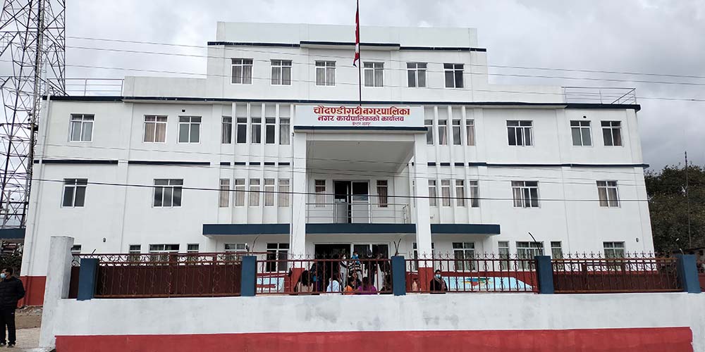 उदयपुरको चौदण्डीगढी नगरपालिकाले अत्याधुनिक सुविधा सम्पन्न आफ्नै प्रशासनिक भवन पाएको छ । चौदण्डीगढी नगरपालिका–७ स्थित साकेला चोकमा नवनिर्मित अत्याधुनिक सुविधा सम्पन्न नगर प्रशासनिक भवनको परराष्ट्र मन्त्री डा. नारायण खड्काले शनिवार उद्घाटन गरेका हुन् ।