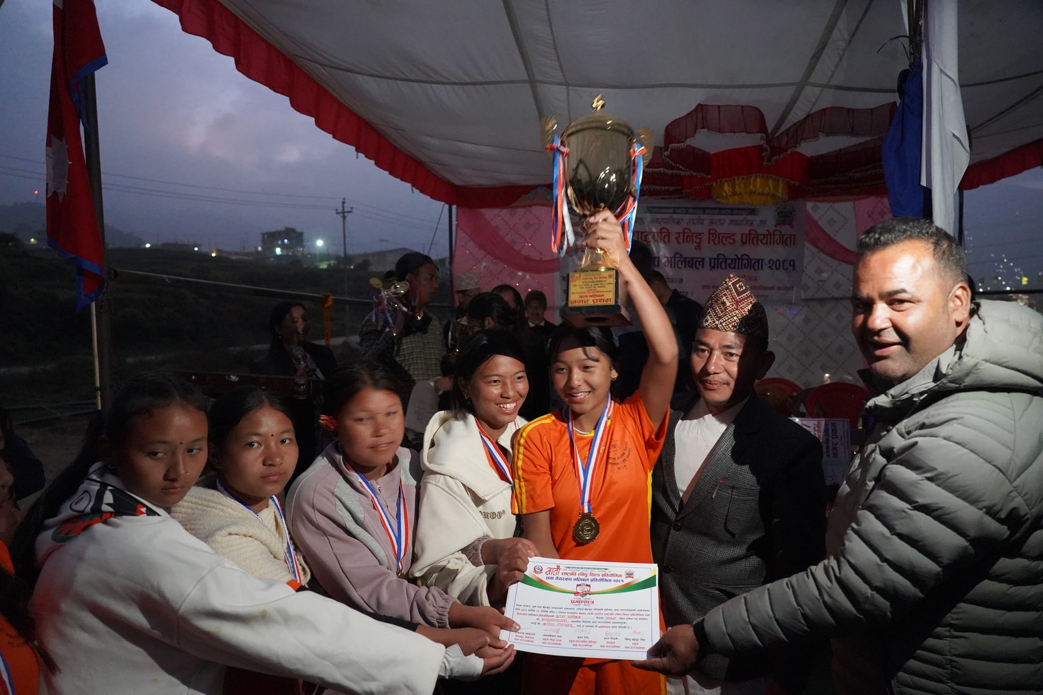 त्यस्तै राष्ट्रपति रनिङ शिल्ड प्रतियोगितामै अंक जोडिने गरी संचालन भएको मेयरकप भलिबल प्रतियोगिताको छात्रतर्फ स्वच्छन्द भैरव मावि थाहा–९ चित्लाङ प्रथम र द्वितीय मत्स्यनारायण मावि भएको छ । छात्रातर्फ प्रथम मत्स्यनाराण मावि प्रथम र नाटेश्वर मावि थाहा–१० टौखेल द्वितीय भएको छ । दुवै तर्फका प्रथम हुनेले १५/१५ हजार नगद र द्वितीय हुनेले १०/१० हजार नगद, शिल्ड तथा प्रमाणपत्र पुरस्कार पाएका छन् ।