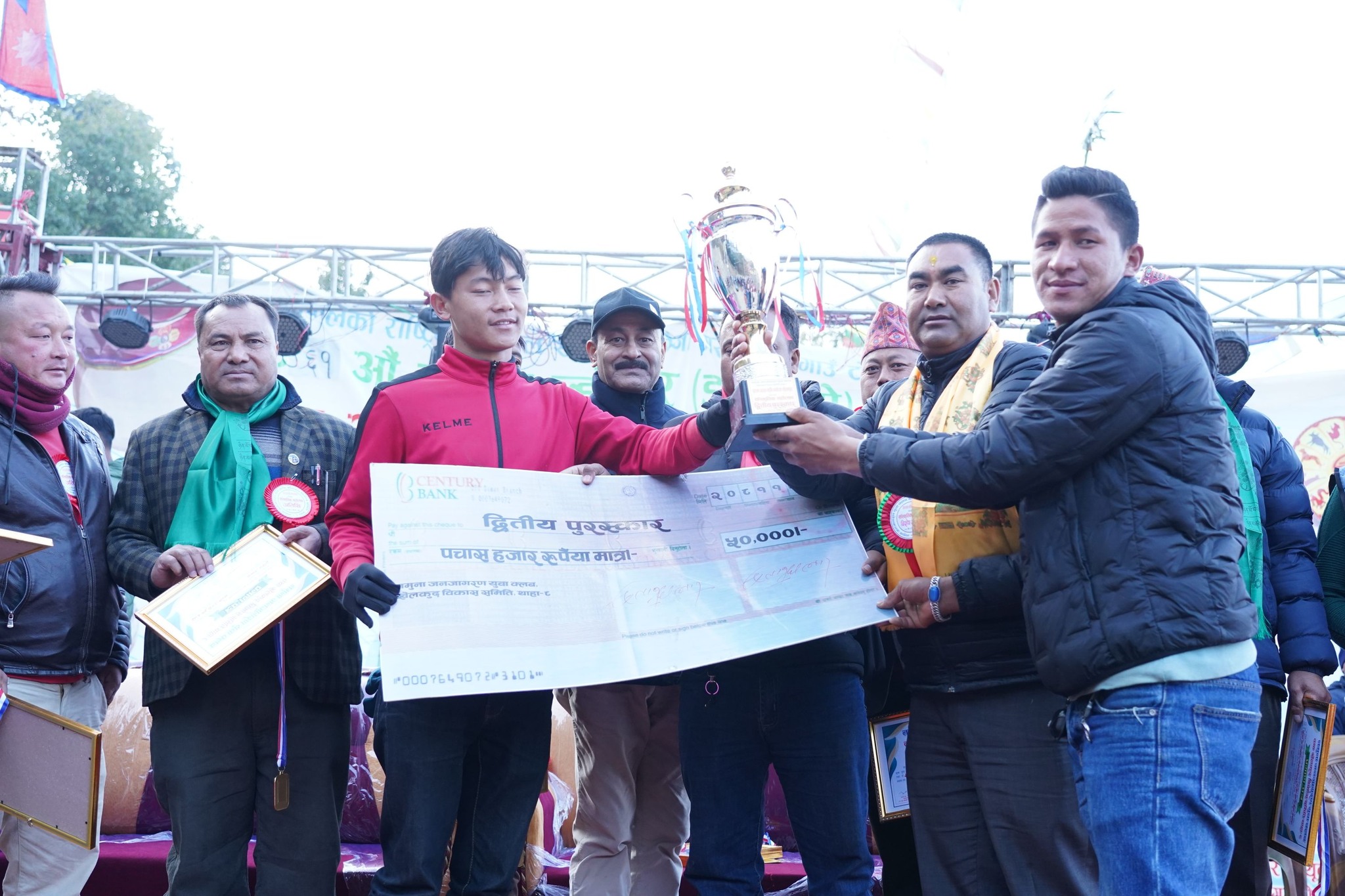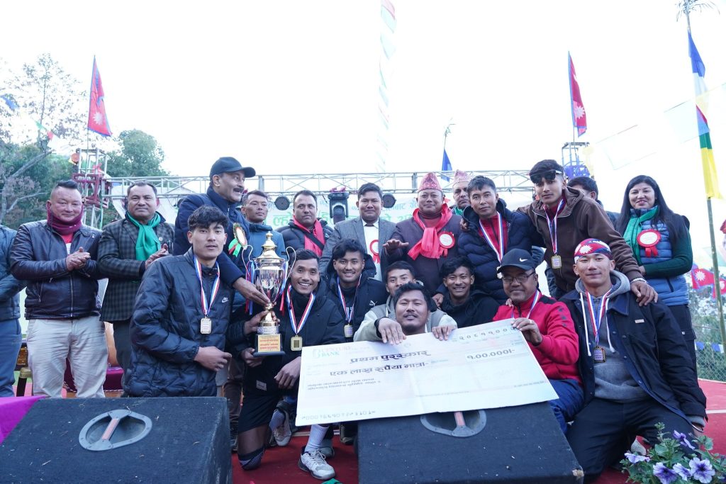 उपाधी चुमेसंगै सल्ले राम्चे युवा क्लबले नगद एक लाख सहित ट्रफी मेडल तथा प्रमाणपत्र प्राप्त गरेको छ । उपविजेता चण्डेश्वरीले ५० हजार नगद सहित ट्रफी, मेडल तथा प्रमाणपत्र प्राप्त गरेको छ । प्रतियोगितामा उत्कृष्ट खेलाडी सल्ले राम्चेका नवीन महतो पुतली घोषित हुँदा वेष्ट सेटर सल्ले राम्चेका मन्जिल गुरुङ बन्न सफल भए भने बेष्ट सर्भर सल्ले राम्चेकै बलराम सुवेदी घोषित भए । बेस्ट ब्लकर चण्डेश्वरीका प्रवेश कार्की, बेस्ट लिब्रो सल्ले राम्चेका अनिल मोक्तान र बेस्ट स्पाइकर चण्डेश्वरीका अफसोच साही ठकुरी घोषित भए ।