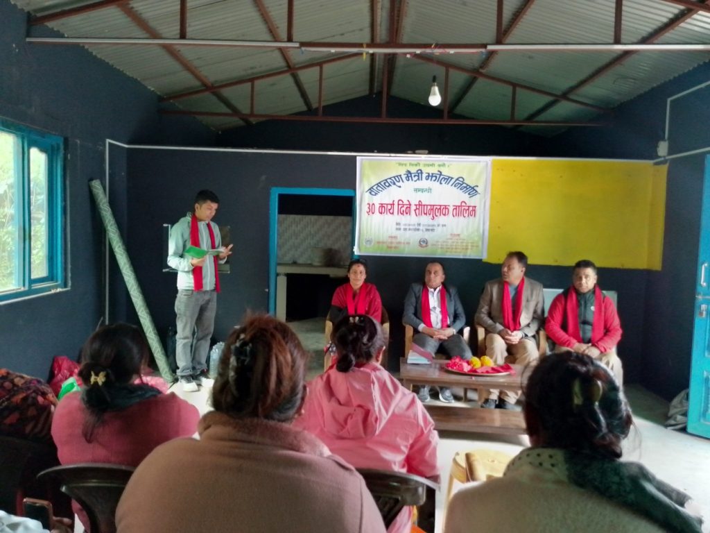 तालिम उद्घाटन गर्दै वडा नम्बर ३ का अध्यक्ष तथा थाहा नगरपालिका आर्थिक विकास समिति संयोजक हिरेन्द्रकुमार रायमाझीले सिकेको सीप व्यवहारमा लागू गर्न आग्रह गरे । पूर्णसरसफाई यूक्त नगर निर्माणमा बातावरणमैत्री झोला निर्माणले टेवा पुग्ने उनको भनाई छ । मानवस्वास्थ्यसँग प्रत्यक्ष सरोकार राख्ने बातावरण स्वच्छ राख्न प्रत्येक नागरिकको दायित्व रहेको उल्लेख गर्दै उनले प्लाष्टिकजन्यपदार्थको अन्त्यका लागि यो कार्यक्रम प्रभावकारी हुने र स्वरोजगारमा पनि टेवा पुग्ने बताए ।