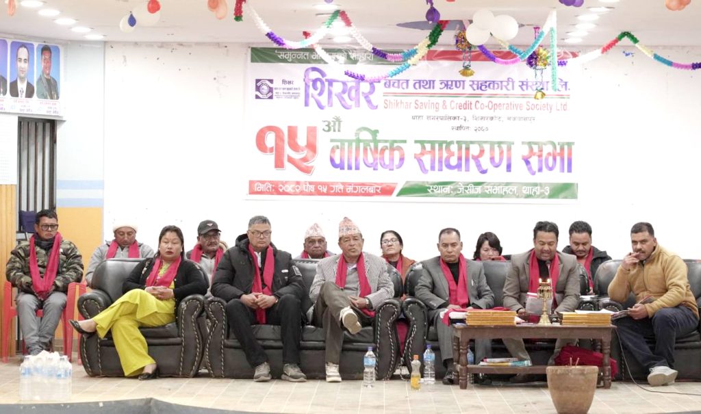 थाहा नगरपालिकाको शिखरकोटमा रहेको शिखर बचत तथा ऋण सहकारी संस्थाको १५ औं वार्षिक साधारणसभा भएको छ । संस्थाका संस्थापक अध्यक्ष मधुसूदन बिष्टको प्रमुख आतिथ्यमा १५ पुसमा आयोजित कार्यक्रममा संस्थाका संचालक समितिका सदस्यहरू, उपसमिती संयोजकहरू र अन्य सम्माननीय सदस्यहरूको उपस्थिती रहेको थियो।
