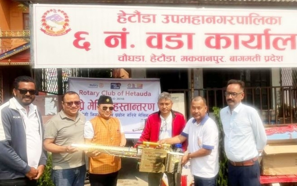 पछिल्लो समय बढिरहेको डेंगी रोग संक्रमण नियन्त्रण गर्न रोटरी क्लबले हेटौंडा उपमहानगरपालिका–६ को वडा कार्यालयलाई उपकरण हस्तान्तरण गरेको छ ।
