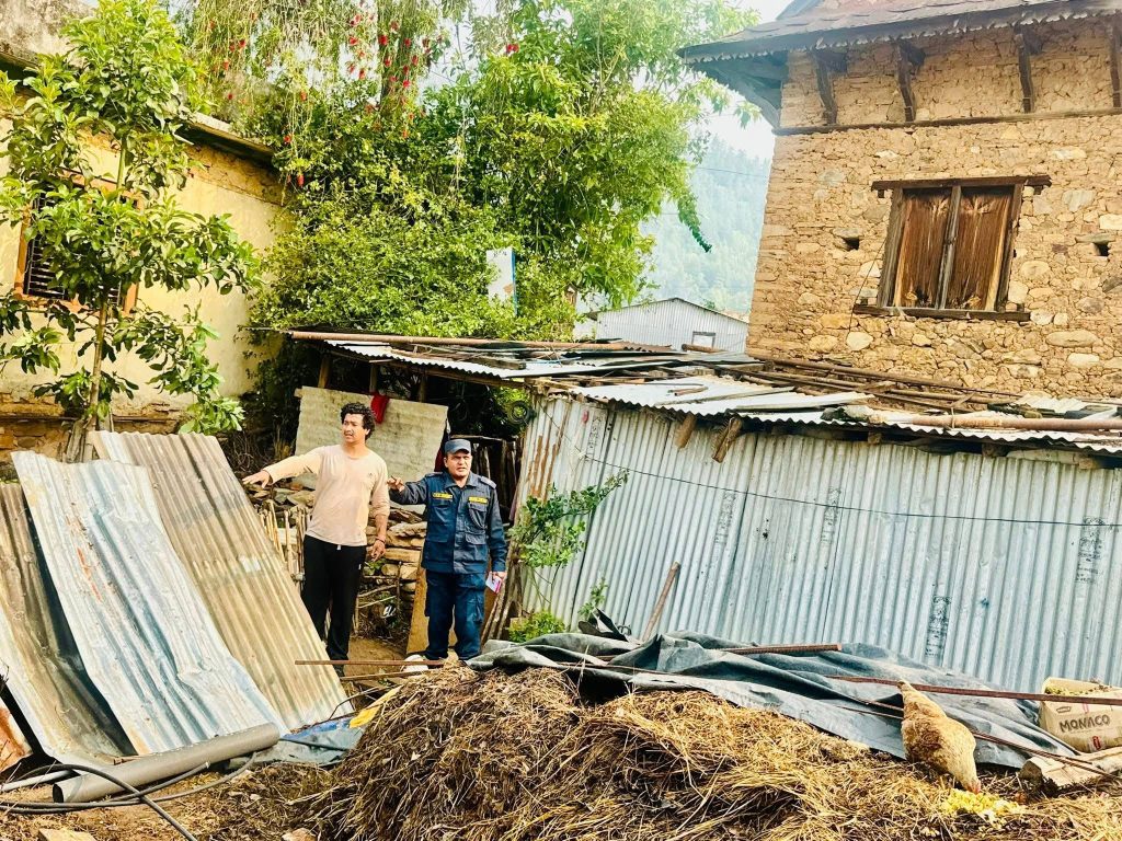 वर्षासँगै आएको हावाहुरीले मकवानपुरको थाहा नगरपालिका–९ का १० परिवारको घर, गोठको छाना उडाएको छ ।