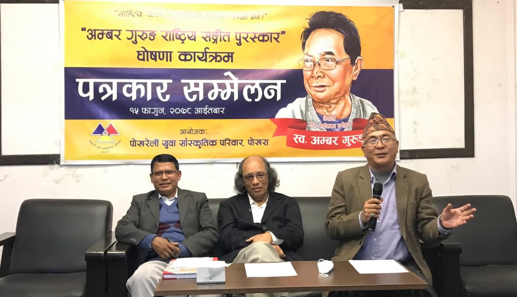 पोखरामा चर्चित संगीतकार अम्बर गुरुङको नाममा संगीत पुरस्कार स्थापना गरिएको छ । पोखरेली युवा सांस्कृतिक परिवार (पोयुसाँप)ले गीत, संगीतका धरोहर, राष्ट्रिय गानका संगीतकार, नेपाल संगीत तथा नाट्य प्रज्ञा प्रतिष्ठानका संस्थापक कुलपति अम्बर गुरुङको नाममा ‘अम्बर गुरुङ राष्ट्रिय संगीत पुरस्कार’ स्थापना गरेको हो । प्रत्येक दुई÷दुई वर्षमा अर्पण गरिने उक्त पुरस्कारको राशी नगद दुई लाखसहित ताम्रपत्र र दोसल्ला रहने पुरस्कार स्थापना समितिका संयोजक सरुभक्त श्रेष्ठले जानकारी दिनुभयो । पुरस्कार आगामी वर्षदेखि अर्पण गर्न शुरु गरिने उहाँले बताउनु्भयो ।