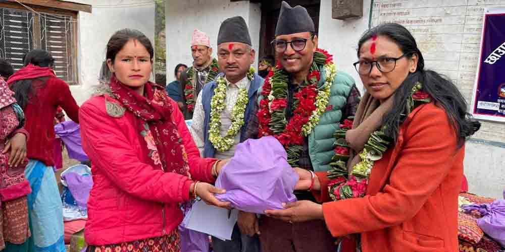 संस्थाले नगरपालिकाको वडा नम्बर २ र ८ वडाका चार÷चार सय किशोरी र महिलालाई स्यानिटरी प्याड र अन्य सामग्री वितरण गरेको छ । नगरपालिकाको वडा नम्बर ८ मा आयोजित कार्यक्रममा ७ लाख ५० हजार रुपैयाँ बराबरको र वडा नम्बर २ मा ३ लाख बढीको स्यानिटरी प्याड, नुहाउने साबुन, ब्रसलगायत सामग्री संस्थाले वितरण गरेको हो ।
