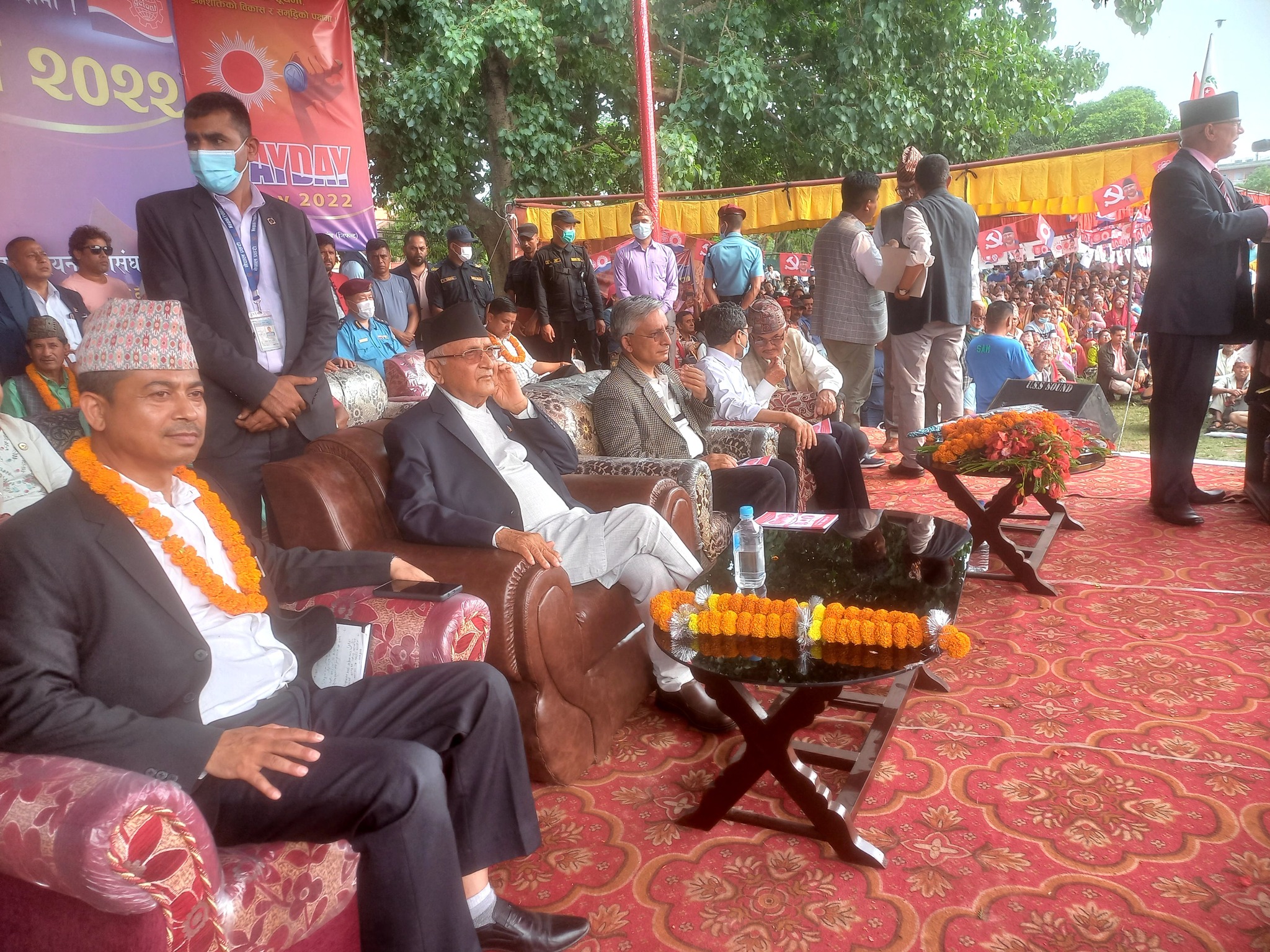 मे दिवसको सन्दर्भ पारेर हेटौंडामा आयोजना गरिएको सभालाई सम्बोधन गर्दै ओलीले सरकारले चुनावको मुखमा कमिसनको लोभमा फसेर स्वास्थ्य सामग्री खरिद गर्न लागेको बताए । अध्यक्ष ओलीले माओवादी केन्द्र ठेकीको बिर्को भएको बताए । नेकपा माओवार्दी केन्द्र अध्यक्ष पुष्पकमल दाहाल प्रचण्डको याद आएको बताए ।