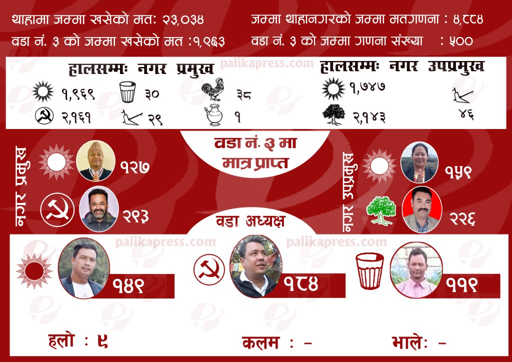 मकवानपुर थाहा नगरपालिका वडा नम्बर ३ को ५ सय मतगणना सकिएको छ ।