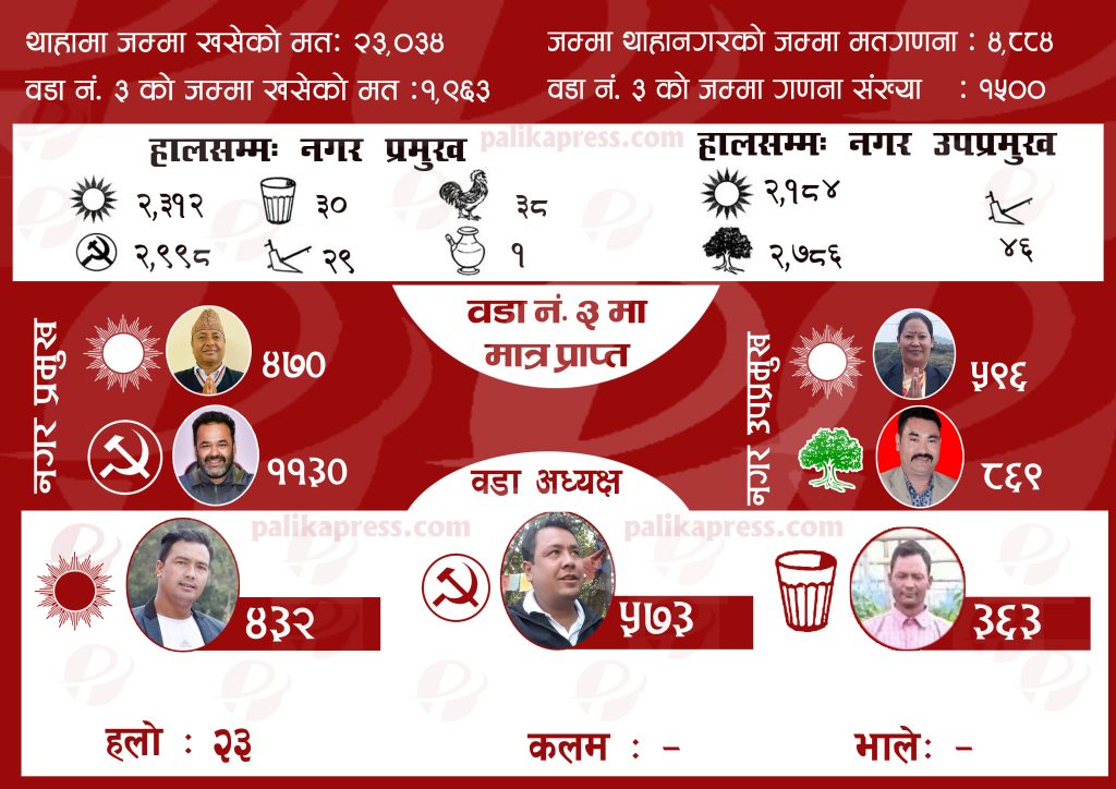 मकवानपुर थाहा नगरपालिका वडा नम्बर ३ को १ हजार ५ सय मतगणना सकिएको छ ।