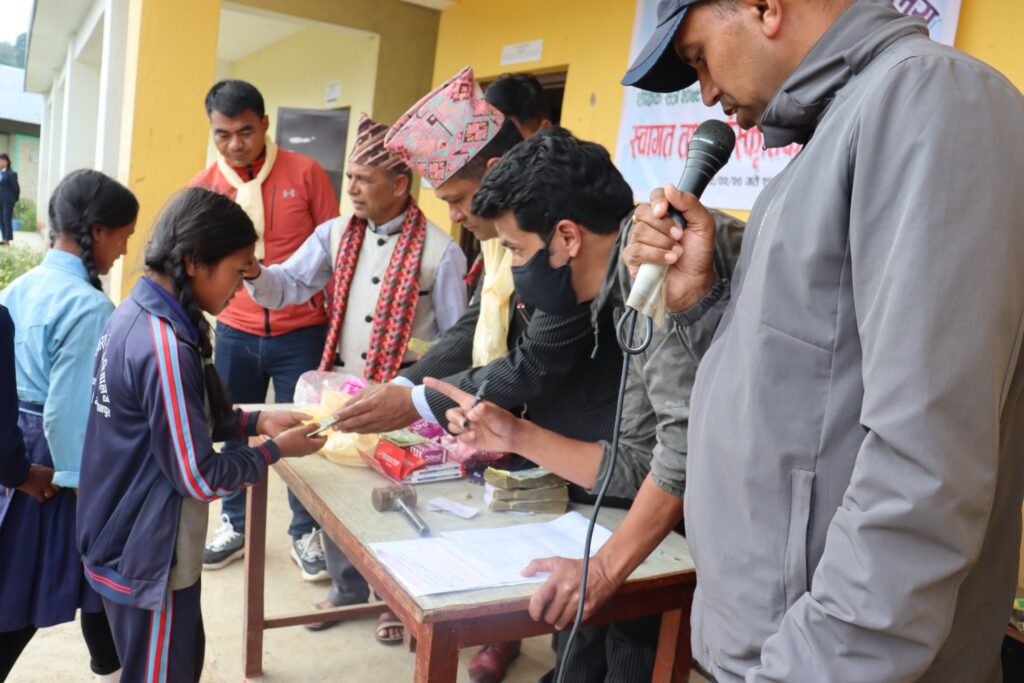 विद्यार्थीलाई छात्रवृत्ति रकम वितरण गरिँदै ।