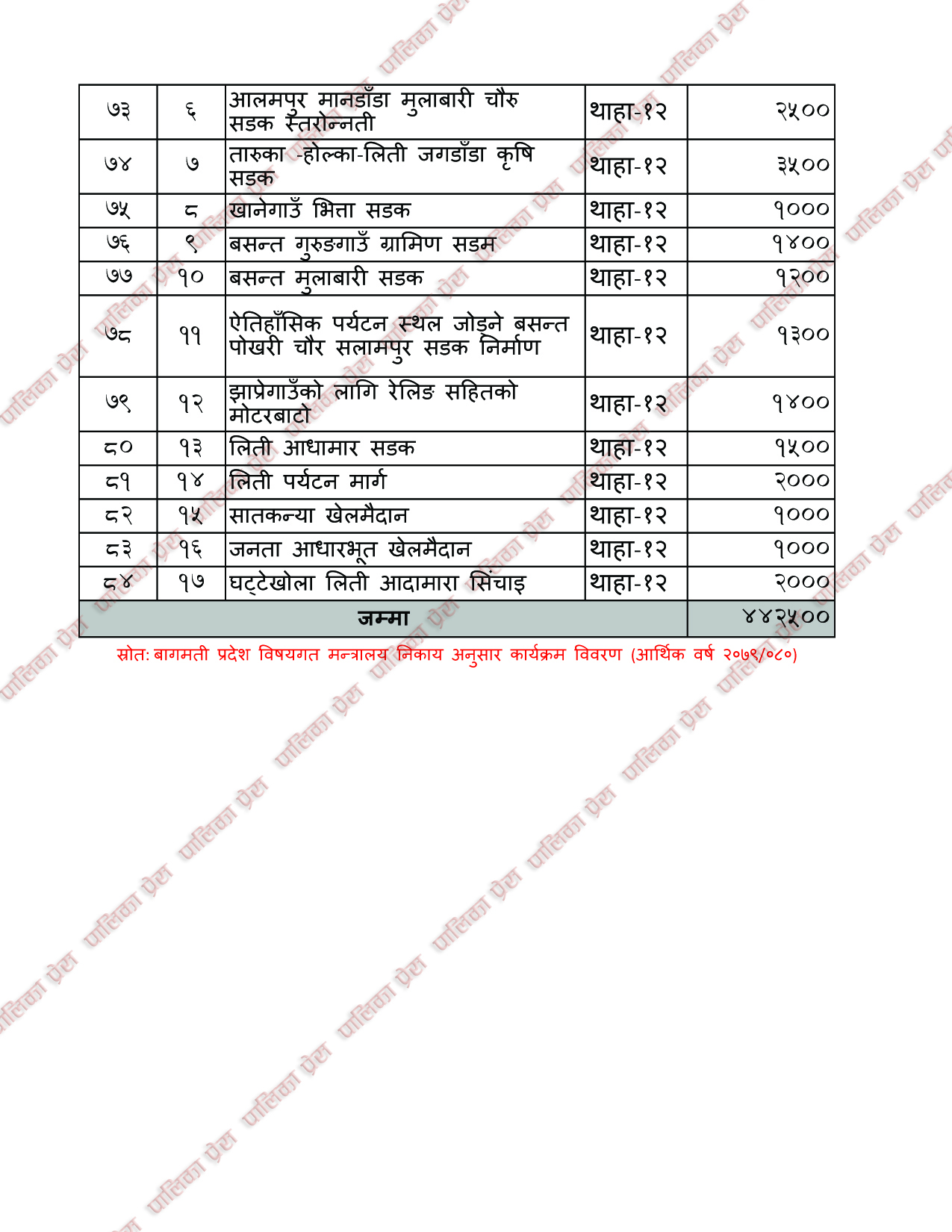 बागमती प्रदेशका विभिन्न विषयगत मन्त्रालयहरुबाट मकवानपुर थाहा नगरपालिका क्षेत्रका लागि ८४ वटा योजना संचालन हुने भएका छन् । आर्थिक वर्ष २०७९÷०८० मा प्रदेशका मन्त्रालय/निकायहरु मार्फत योजनाहरु संचालन हुने भएका छन् ।