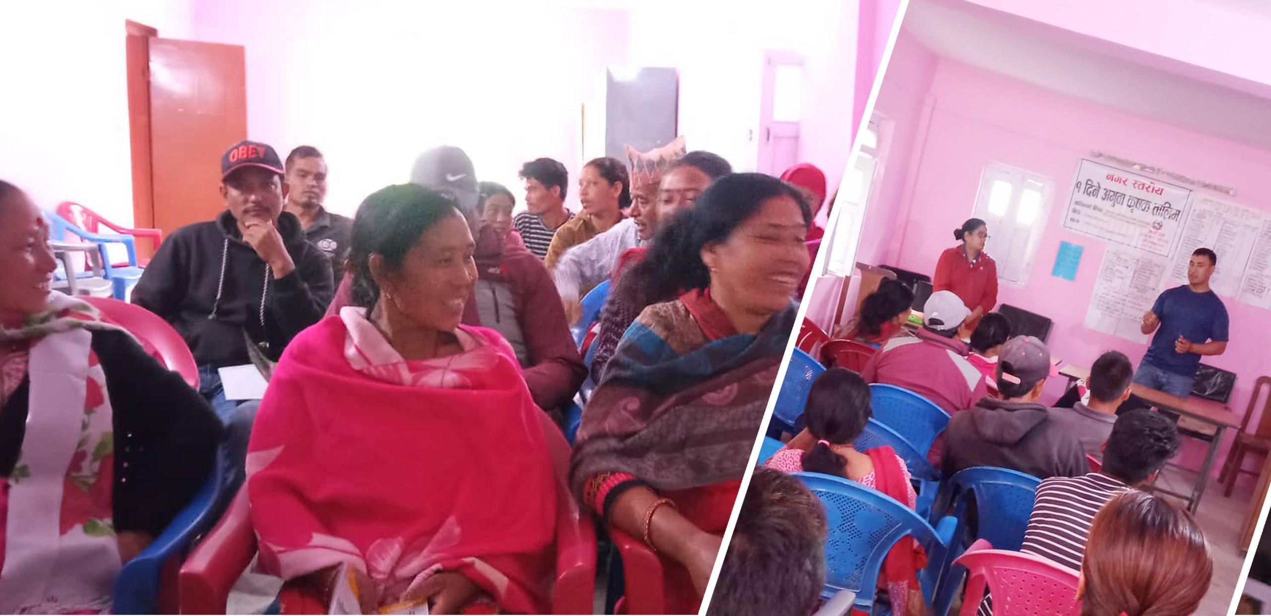 थाहा नगरपालिका कृषि विकास शाखाको आयोजनामा विषाधी प्रयोग न्युनीकरण तथा कृषक समूह व्यवस्थापनको विषयमा १४ र १५ असारमा दुई भिन्दाभिन्दै स्थानमा एक/एक दिने तालिम भएको हो । १४ असारमा थाहा नगरपालिका वडा नम्बर ९ को कार्यालयमा तालिम भएको थियो । वडाध्यक्ष राजकुमार बलामीको विशेष उपस्थितीमा भएको तालिममा नारायणहिटी, माझगाउँ लगायतका क्षेत्रका किसानहरुको सहभागिता रहेको थियो ।