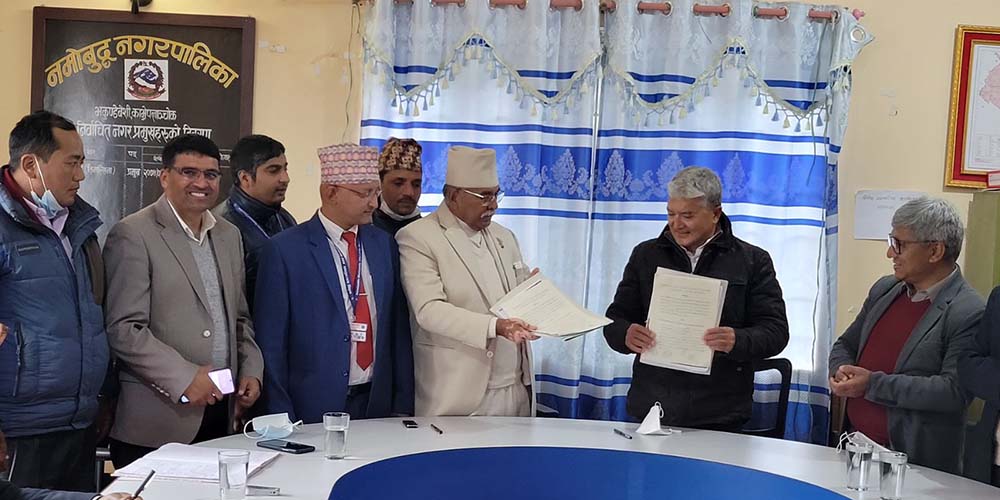नमोबुद्ध नगरपालिकाका प्रमुख टिपी शर्मा तिमल्सिना र धुलिखेल अस्पतालका कार्यकारी निर्देशक डा. रामकण्ठ माकजुले समझदारीपत्रमा हस्ताक्षर गरे ।समझदारीपत्रमा नमोबुद्ध वडा नम्बर ११ मा रहेको कित्ता नम्बर ६२२ र ७३२ को जग्गामा धुलिखेल अस्पतालको अनुसन्धान केन्द्र स्थापना गरिने उल्लेख छ । उक्त जग्गाको भोगाधिकार प्राप्ति गर्न कानुनबमोजिम पूरा गर्नुपर्ने प्रक्रियाका लागि धुलिखेल अस्पतालले पहल गर्नेछ भने यसको सहजीकरण नमोबुद्धले गर्ने सहमति भएको छ ।उक्त जग्गाको स्वामित्व सरकारको नाममा रहने र धुलिखेल अस्पतालले अनुसन्धान केन्द्र स्थापना गरी स्वास्थ्य, शिक्षा र अनुसन्धानसम्बन्धी सार्वजनिक कार्यका लागि मात्र उपयोग गर्न पाउने उल्लेख छ । यस्तै, उक्त जग्गामा धुलिखेल अस्पतालले स्वास्थ्य अनुसन्धान केन्द्र स्थापना गरी स्वास्थ्य, शिक्षा र अनुसन्धानसम्बन्धी सार्वजनिक कार्यका लागि आवश्यक पर्ने भवन तथा पूर्वाधार निर्माणमा नमोबुद्धको कुनै पनि आर्थिक दायित्व रहने छैन । तर, उक्त पूर्वाधार संरक्षणको जिम्मेवारी वहन गर्नेछ ।