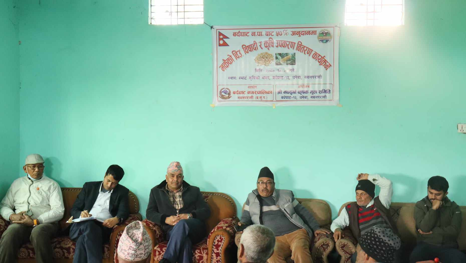 बर्दघाट नगरपालिकाका किसानलाई मकैको बिउ, विषादी र कृषि उपकरण बाँडियो