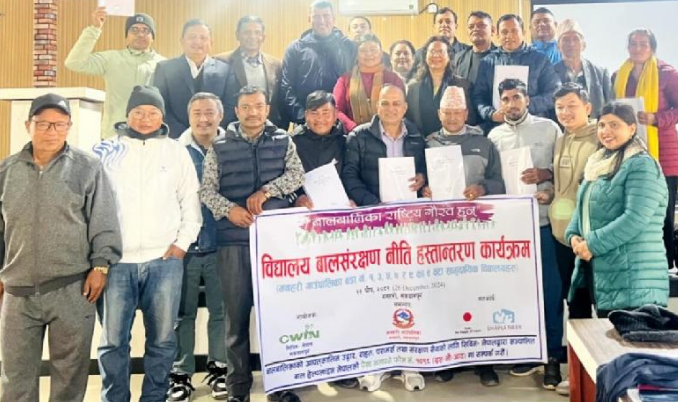 मनहरी सरकारले पालिकाका ९ वटा विद्यालयलाई बालसंरक्षण नीति हस्तान्तरण गर्यो