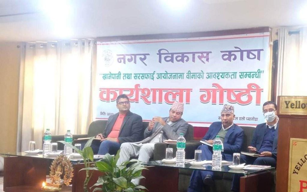 नगर विकास कोषको एक दिने कार्यशाला गोष्ठी समापन भएको छ। कोषले खानेपानी तथा सरसफाई आयोजनामा वीमाको आवश्यकता सम्बन्धि एलो प्यागोडा होटल, काठमाडौंमा गोष्ठीको आयोजना गरेको हो।