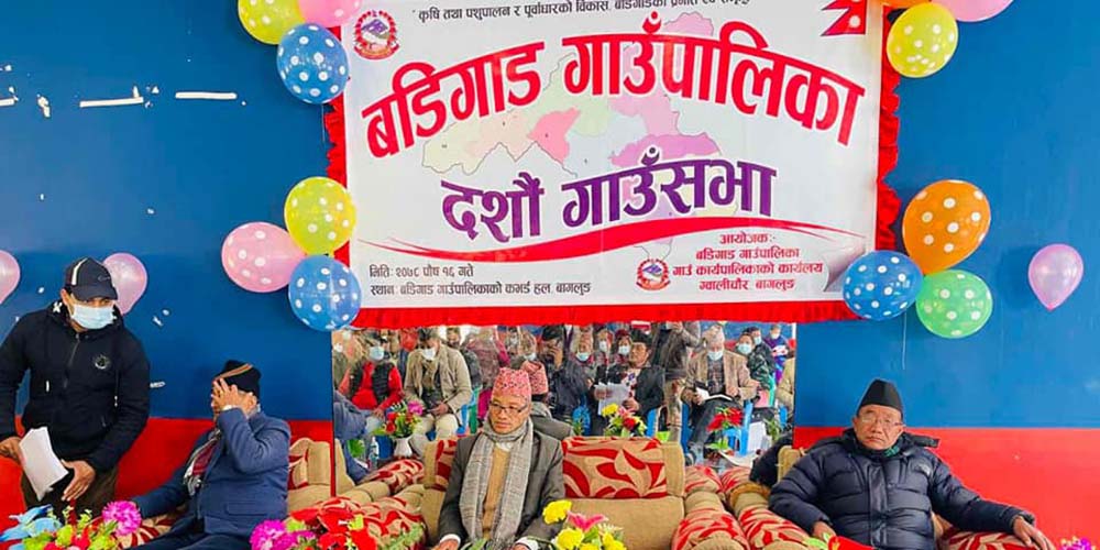बागलुङको बडिगाड गाउँपालिकाको दसौँ गाउँसभा ग्वालीचौरमा सम्पन्न भएको छ । सभाले बडिगाड गाउँपालिकाको कला, भाषा, संस्कृति संरक्षणका लागि कला, भाषा, संस्कृति संरक्षण ऐन, २०७८, स्वास्थ्य क्षेत्र व्यवस्थापनका लागि स्वास्थ्य व्यवस्थापन ऐन, २०७८ र टोल विकास संस्था गठन तथा सञ्चालनका लागि टोल विकास संस्था गठन तथा सञ्चालन कार्यविधि, २०७८ पारित गरेको छ ।