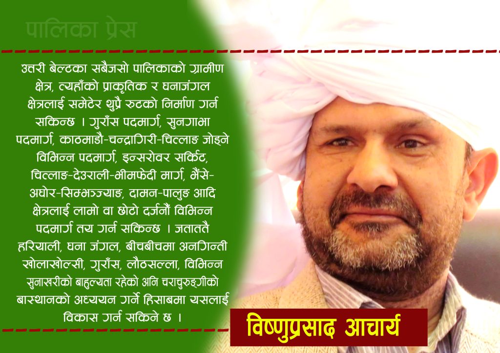 यहाँ सबै रुटको व्याख्या सम्भव हुँदैन । तर उत्तरी बेल्टका सबैजसो पालिकाको ग्रामीण क्षेत्र, त्यहाँको प्राकृतिक र घनाजङ्गल क्षेत्रलाई समेटेर थुप्रै रुटको निर्माण गर्न सकिन्छ । गुराँस पदमार्ग, सुनगाभा पदमार्ग, काठमाडौँ–चन्द्रागिरी– चित्लाङ जोड्ने विभिन्न पदमार्ग, इन्द्रसरोवर सर्किट, चित्लाङ–देउराली–भीमफेदी मार्ग, भैंसे–अघोर–सिम्भञ्ज्याङ, दामन–पालुङ आदि क्षेत्रलाई लामो वा छोटो दर्जनौँ विभिन्न पदमार्ग तय गर्न सकिन्छ । जताततै हरियाली, घना जङ्गल, बीचबीचमा अनगिन्ती खोलाखोल्सी, गुराँस, लौठसल्ला, विभिन्न सुनाखरीको बाहुल्यता रहेको अनि चराचुरुङ्गीको बास्थानको अध्ययन गर्ने हिसाबमा यसलाई विकास गर्न सकिने छ । यसैगरी धेरै याद नगरिएको तर प्रचुर सम्भावना रहेको लोथर खोलादेखि राक्सिराङको शिलिङ्गे हुँदै कैलाशबाट पालुङ निस्कन सक्ने र खैराङदेखि धादिङसम्मको सानदार रुट निर्माण गर्न सकिन्छ । यो रुटलाई चेपाङ रुट, चिउरी रुट र त्यहाँ उत्पादन हुने महलाई आधार मानेर एउटा राम्रो गन्तव्य निर्माण गर्न सकिन्छ ।