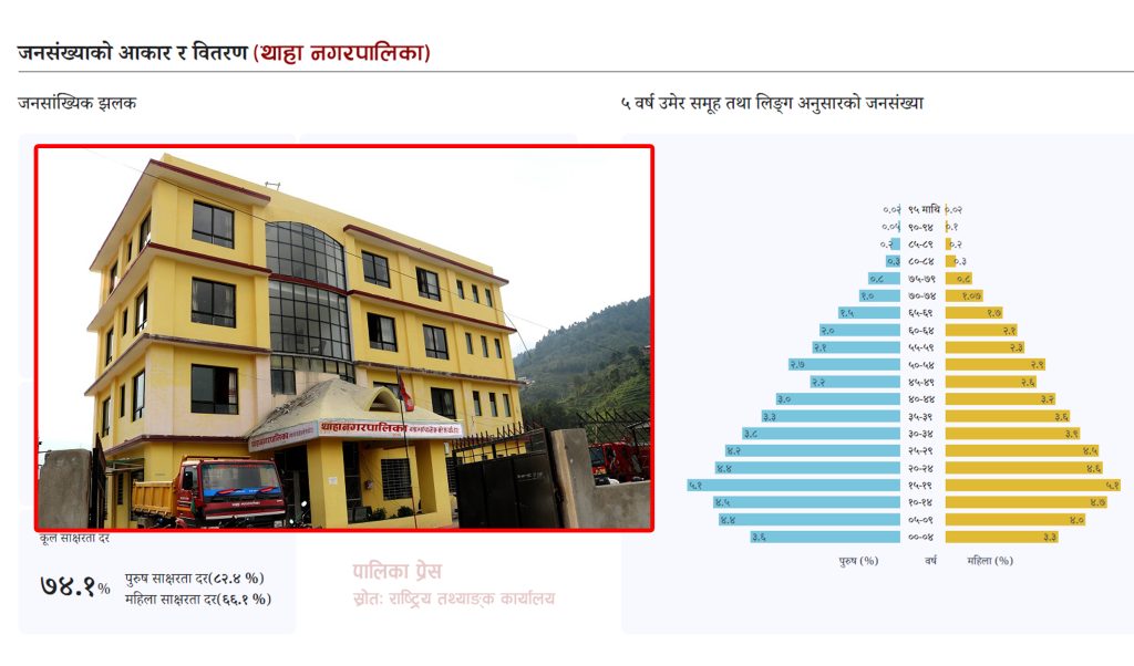 मकवानपुर थाहा नगरपालिकाको जनसंख्या वृद्धिदर ऋणत्मक भएको छ । पालिकाको २०६८ सालको जनगणना अनुसार ४१,६२३ जनसंख्या रहेकोमा २०७८ सालको जनगणनामा उक्त संख्यामा २७५३ जना घटेको देखिएको छ ।