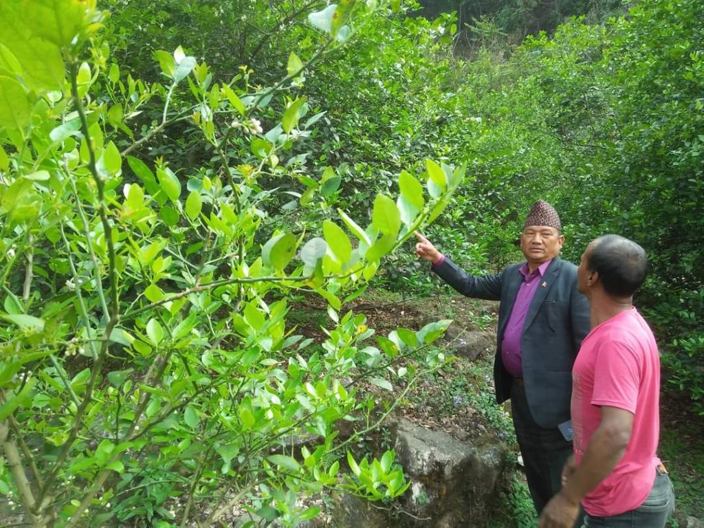 कृषक बीर बहादुर स्याङ्तानले लगाएको व्यवसायिक कागती खेतीको अध्यक्ष स्याङ्तानले स्थलगत अवलोकन र कागती खेतीको वारेमा जानकारी लिएको गाउँपालिकाका कृषि शाखा प्रमुख चन्द्रकान्त चौधरीले बताए ।
