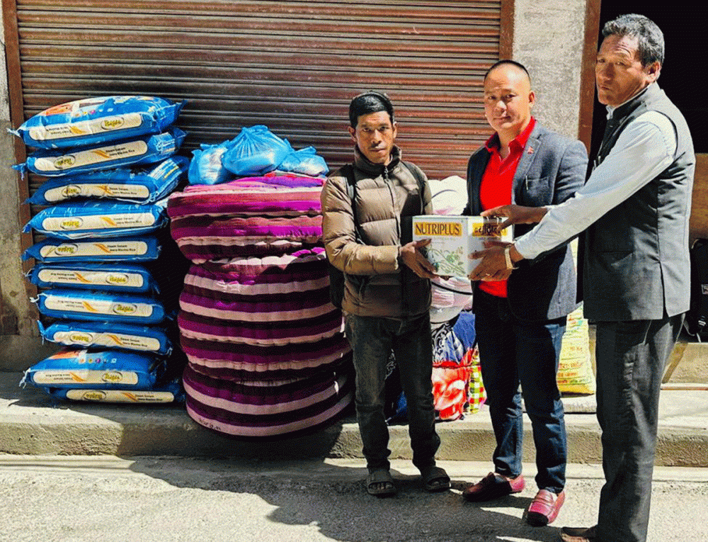 नेता लामाले सोमबार अग्नि पीडित पदम बहादुरलाई ५ थान सिरक, ५ थान डस्ना, ५ थान सिरानी, १० बोरा चामल, ५ लिटर तेल, ५ केजी चिनी, ५ केजी दाल लगायत ५ हजार रुपैयाँ सहयोग गरेका हुन् ।