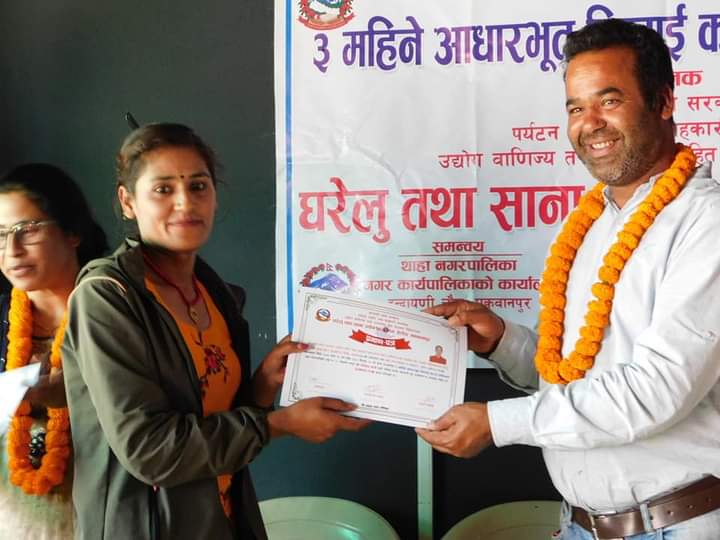 हरेक मानिस भित्र रहेको सीपलाई व्यवहारमा उतार्न सके आत्मनिर्भर र स्वरोजागरको अवस्था सिर्जना हुने थाहा नगरपालिकाका नगर प्रमुख विष्णु बहादुर विष्टले बताएका छन् । थाहानगरको थानाबजारमा घरेलु तथा साना उद्योग कार्यालय हेटौंडाको आयोजना तथा थाहा नगरपालिकाको कार्यालय र थाहानगर उद्योग वाणिज्य संघको समन्वयमा आयोजना गरेको तीन महिने सिलाई कटाई तालिमको समापन समारोहमा नगर प्रमुख बिष्टले यस्तो बताएका हुन् ।
