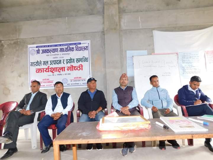 मकवानपुरका थाहा नगरपालिका वडा नम्बर को जनकल्याण माध्यमिक विद्यालयले विद्यार्थी र स्थानीय किसानलाई गड्यौला मल उत्पादन र प्रयोग सम्बन्धि तालिम गरेको छ । किसानलाई अर्गानिक खेतीतर्फ आकर्षित गर्न जैविक मल बनाउन दिएको ४ दिने कार्यशाला गोष्ठी ८ जेठमा सकिएको हो ।