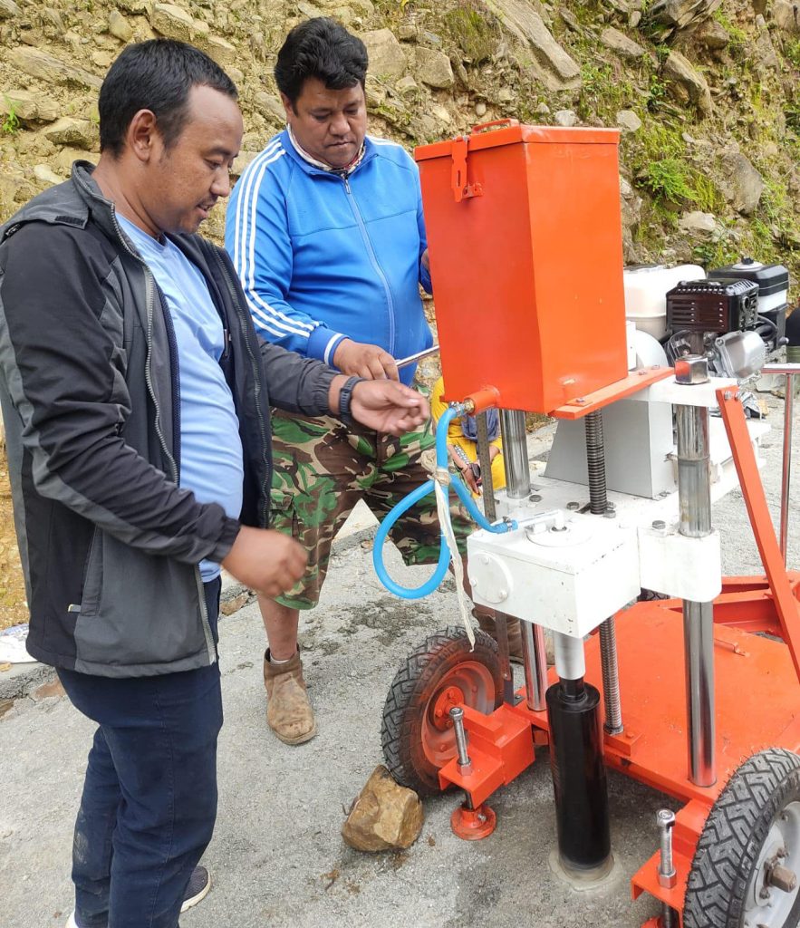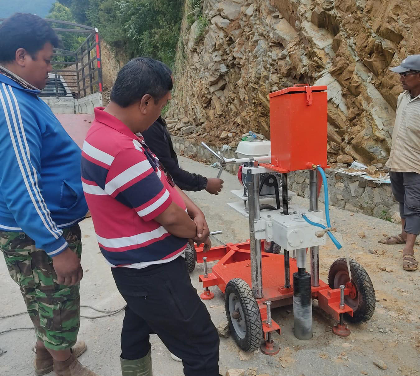 पालिकाले खड्बु सुकौरा नयाँगाउँ सडक आयोजनाको क्रस कटिङ मेशिनको प्रयोग गरी योजनाको अनुगमन गरिएको हो । फोटो सौजन्य: इन्द्रसरोवर गाउँपालिका
