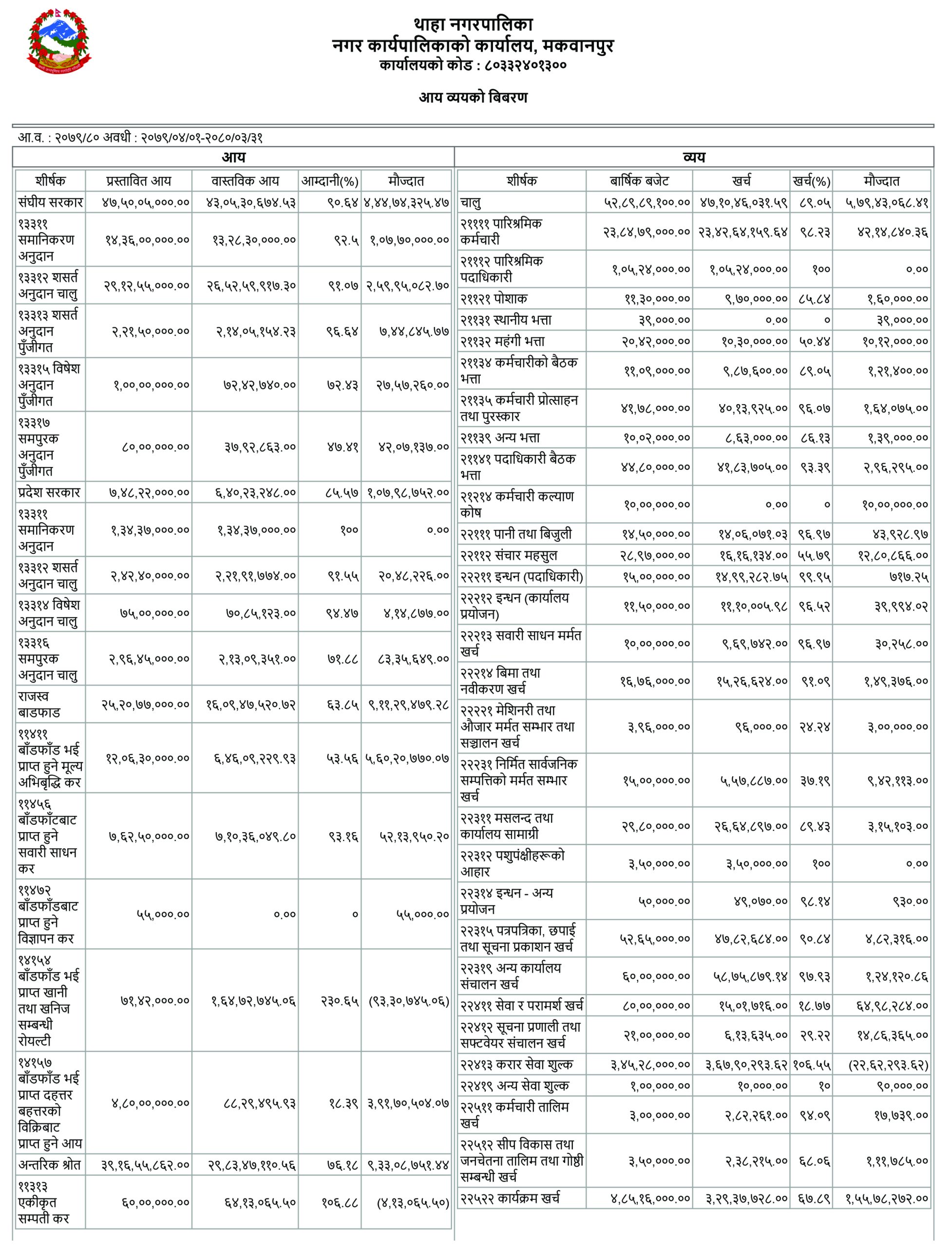 हेर्नुहोस् थाहा नगरपालिकाको समिक्षात्मक आर्थिक प्रतिवेदनः