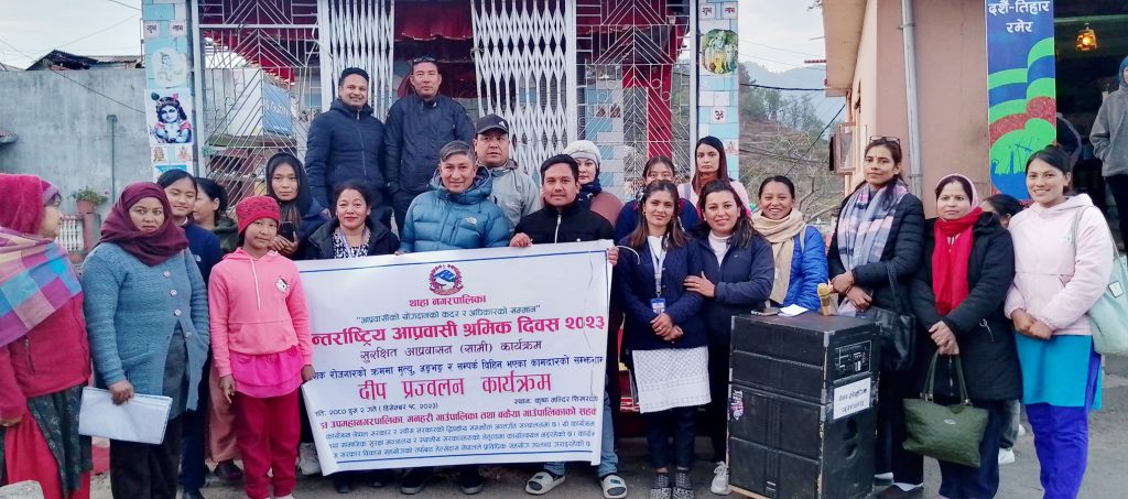अन्तर्राष्ट्रिय आप्रवासी श्रमिक दिवस २०२३ को अवसरमा सुरक्षित आप्रवासन (सामी) कार्यक्रम अन्तर्गत हेटौंडा उपमहानगरपालीका, मनहरी गाउँपालिका र बकैया गाउँपालिकाको सहकार्य तथा थाहा नगरपालिकाको आयोजनामा दिपप्रज्वलन गरियको हो । थाहा नगरपालिका वडा नम्बर ३ का वडाध्यक्ष अध्यक्ष हिरेन्द्र कुमार रायमाझीको प्रमुख आतिथ्यतामा भएको थियो ।कार्यक्रममा प्रमुख अतिथी रायमाझीले वैदेशि रोजगार बाध्यता रहेको बताउँदै देशमै उद्यम विकास गर्न सके स्वदेशमै आम्दानी गर्न सकिने बताए । यसका लागि पालिकाले विभिन्न योजना निर्माण गरिरहेको बताए । वैदेशिक रोजगारमा जानै परे राम्रोसंग बुझेर जान पालिकाबाट पनि यससम्बन्धी जानकारी उाउन सकिने उल्लेख गरे ।