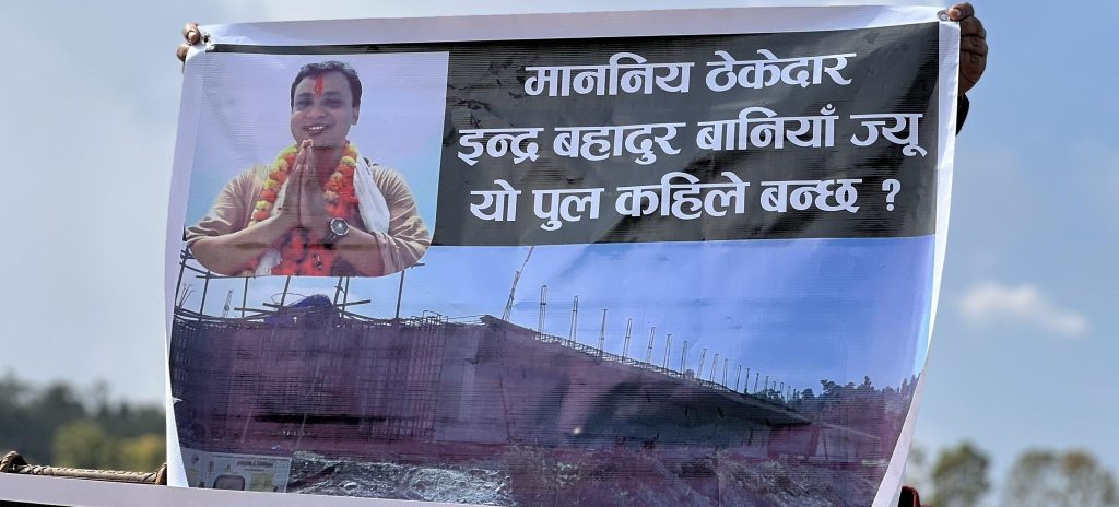 मकवानपुरको मनहरीमा पुलको ठेक्का लिएर काम नगर्ने सांसद इन्द्र बहादुर बानियाँको फोटो व्यानरमा राखेर पाँच दलले बिरोध प्रर्दशन गरेका छन् । मनहरीमा पुल निर्माणको ठेक्का लिएर पनि काम नगर्ने बागमती प्रदेशसभाका सदस्य इन्द्रबहादुर बानियाँ सहितका फोटोहरु व्यानरमा राखेर यस क्षेत्रमा ११ फागुनमा प्रर्दशन गरिएको हो ।