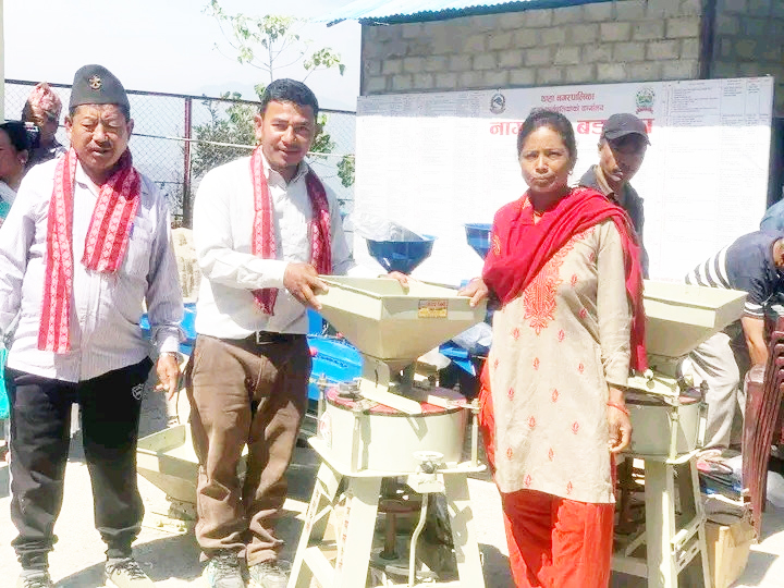 ज्ञान केन्द्रको ९ लाख ८० हजार र कृषि समुहको ९ लाख ८० हजार साझेदारीमा ३ सय किलो रामपुर हाइब्रीड १० जातको मकैको बीउ, किटनासक बिषादी,मिनि टिलर ७ एच पि क्षमताको पेट्रोल १६ वटा, मिनि टिलर ७ एच पि डिजेल १ वटा,मकै छोडाउने मेसिन ६ वटा, मकै रोप्ने मेसिन १ वटा,कम्बाइन च्याख्ला बनाउने मिल ७ वटा, ५ सय किलो क्षमताको डिजिटल काँटा १९ वटा, त्रीपाल १८×२४ को ७२ वटा,घट्ट मिल सानो ३ वटा र इ स्प्रेयर २२ वटा प्रदान गरिएको अध्यक्ष स्याङ्तानले जानकारी दिए ।