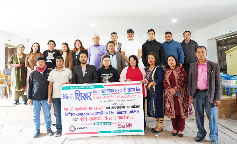 शिखर बचत तथा ऋण सहकारी संस्थाले १४ औं स्थापना दिवसको अवसर पारेर आफ्ना सदस्यहरुलाई वित्तीय साक्षरता तथा व्यावसायिक सीप विकास तालिम दिएको छ । थाहा नगरपालिका वडा नम्बर ३ को शिखरले सो कार्यक्रमको अवसरमा ३८ जना सदस्यहरुलाइ कृषि सामाग्री पनि वितरण गरेको छ ।