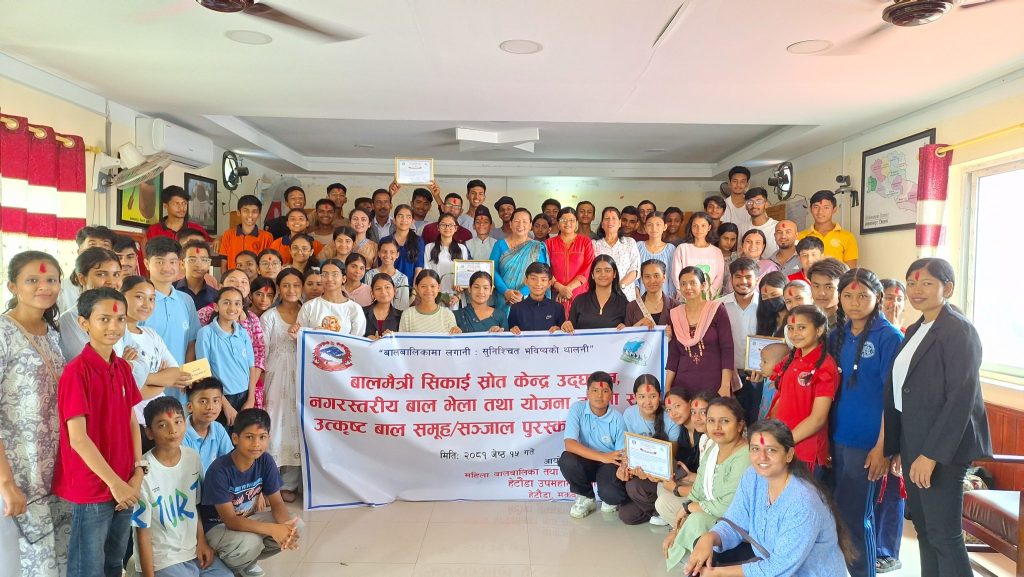 महिला बालबालिका तथा समावेसीकरण महाशाखाले गरेको मुल्याङकनका आधारमा हेटौंडा २ को सिदार्थ, ४ को मित्रसमाज, ८ को धौलागिरी,१६ को लक्ष्मिनारायण र १८ को कमला श्रृजनशिल बाल समुहलाई नगद सहित सम्मान गरीएको हो । कार्यक्रममा हेटौंडा ८ को बाल सञ्जाललाई प्रोत्साहन स्वरुप नगद हस्तान्तरण गरिएको थियो । पुरस्कार हस्तान्तरण गर्दै नगर प्रमुख लामाले उपमहानगरको अभियानलाई अघि बढाउनका भुमिका खेल्ने सबैलाई धन्यवाल दिइन् । सुन्दर नगर निर्माणको अभियानमा बालमैत्री घोषणाले ठुलो भुमिका खेल्ने बताइन् ।