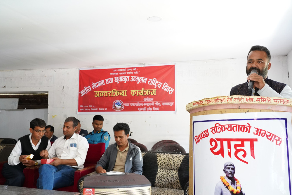 जातीय विभेद् तथा छुवाछुत उन्मुलन राष्ट्रिय दिवसका अवसरमा थाहामा अन्तरक्रिया भएको छ । शिखरकोटको विकास घरमा थाहा नगरपालिकाको आयोजनामा भएको अन्तरक्रियामा जात व्यवस्थाको अन्त्य गर्दै समतामूलक समाजको निर्माण केन्द्रित भएको थियो । कार्यक्रममा सहभागी दलित अगुवाहरुले उजुरीका रुपमा हेर्दा थाहा नगरमा जातीय विभेद नदेखिए पनि व्यक्ति र समुदाय पिच्छेका व्यवहारमा विभेद बढ्दै गएको उल्लेख गर्दै स्थानीय सरकार भौतिक विकास केन्द्रित मात्र नभई सामाजिक रूपान्तरण तर्फ केन्द्रित हुन सुझाव दिएका थिए ।\