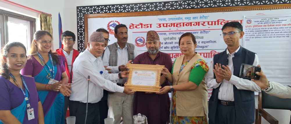 हेटौडा उपमहानगरपालिकालाई पुर्ण खोप सुनिश्चितता भएको पालिका घोषणा गरिएको छ । हेटौडा उमहानगरपालिकामा आइतवार आयोजित कार्यक्रममा उपमहानगरपालिकाकालाई पुर्णखोप सुनिश्चितता घोषणा गरिएको हो ।