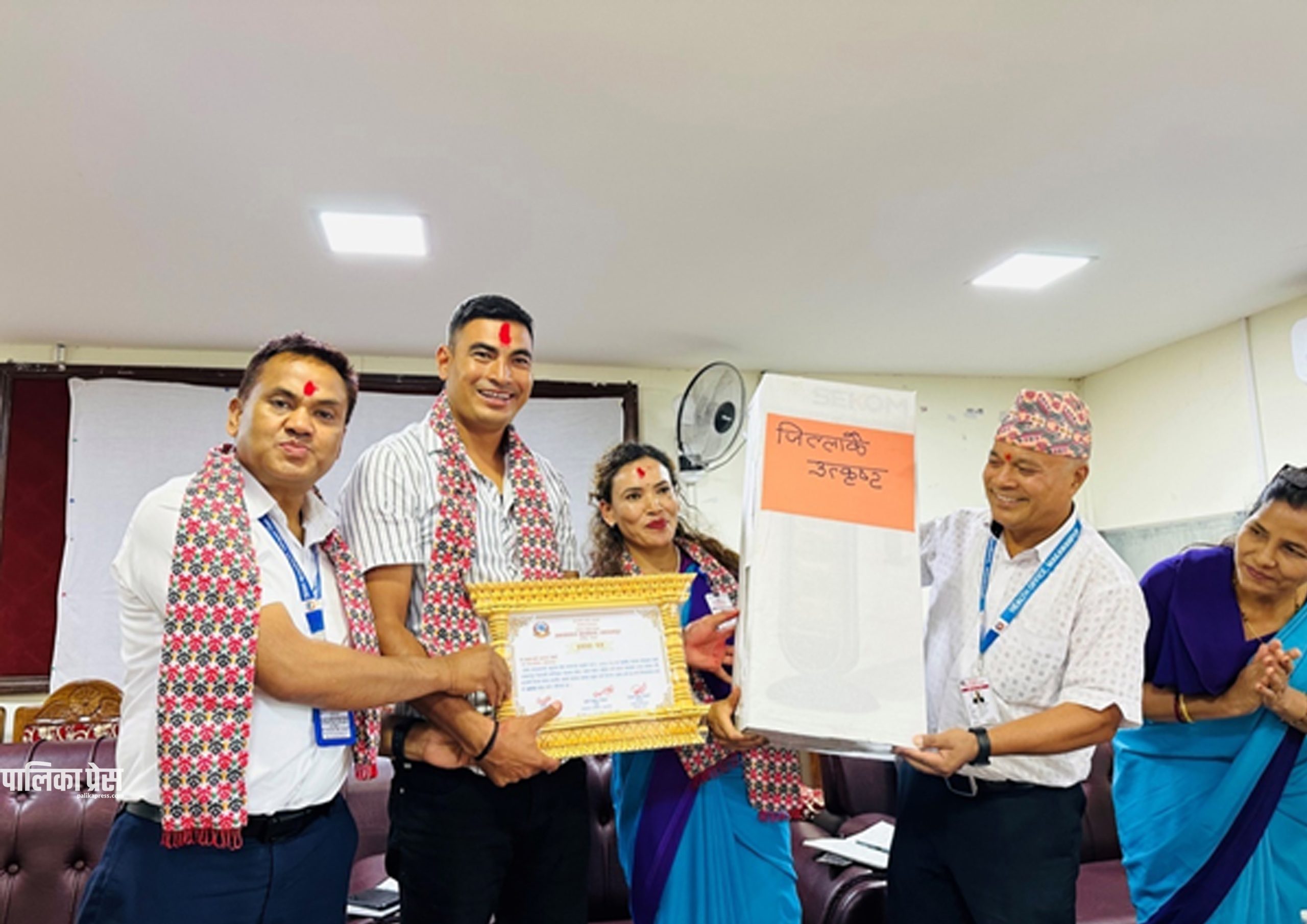 जिल्ला प्रथम पुरस्कार ग्रहण गर्दै ।