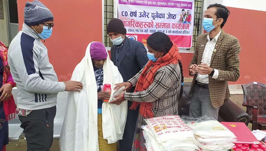 रुपन्देही जिल्लाको तिलोत्तमा नगरपालिकाले ८० देखि १०२ वर्ष सम्मका उमेर पुगेका जेष्ठ नागरिकहरूलाई सम्मान गरेको छ । २५ माघमा एक कार्यक्रमको आयोजना गरी नगरपालिकाले वडा नम्वर ४ को वडा कार्यालय परिसरमा जेष्ठनागरिकहरुलाई सम्मान गरेको हो ।
