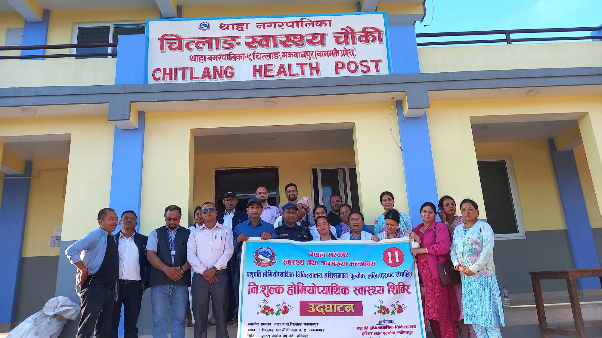 थाहा नगरपालिका अन्तर्गत रहेको चित्लाङ स्वास्थ्य चौकीमा ५ असोजमा एकदिने निःशुल्क होमियोप्याथिक स्वास्थ्य शिविर भएको छ । शिविरमा ५ सय ६५ जनाले सेवा पाएको चित्लाङ स्वास्थ्य चौकीका प्रमुख महेश्वर लामिछानेले जानकारी दिए ।