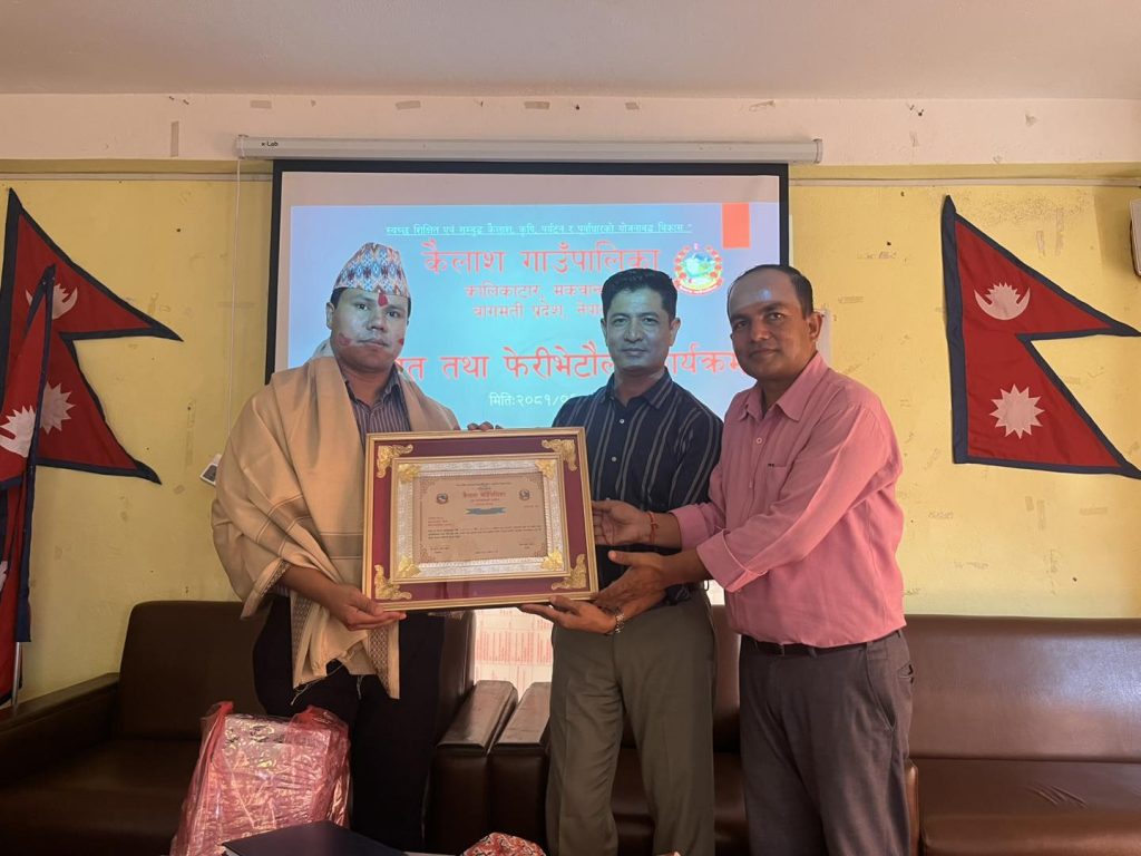 यसैबीच कैलाश गाउँपालिकामा नयाँ प्रमुख प्रशासकीय अधिकृत अमुल श्रेष्ठ आएका छन् । श्रेष्ठलाई पनि पालिकाले स्वागत गरेको छ । विदाइ तथा स्वागत कार्यक्रममा गाउँपालिकाका अध्यक्ष लोक बहादुर मुक्तान, उपाध्यक्ष बाल कुमार मल्ल तथा अन्य कर्मचारीहरुको समेत उपस्थिती रहेको थियो ।