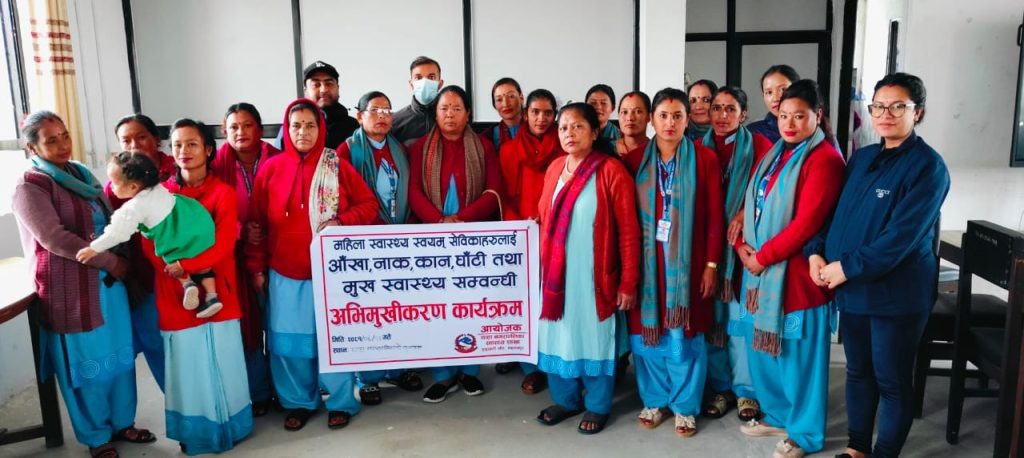 थाहा नगरपालिका स्वास्थ्य शाखाको आयोजनामा महिला स्वास्थ्य स्वयम्सेविकाहरुलाई एक दिने नाक, कान, घाँटी, तथा मुखको स्वास्थ्य सम्बन्धी अभिमुखीकरण गरिएको छ ।